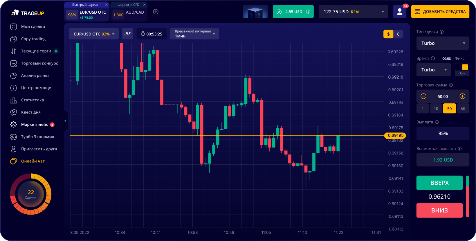 Бесплатно регистрируйте аккаунт на TradeUP, чтобы начать зарабатывать до 70%